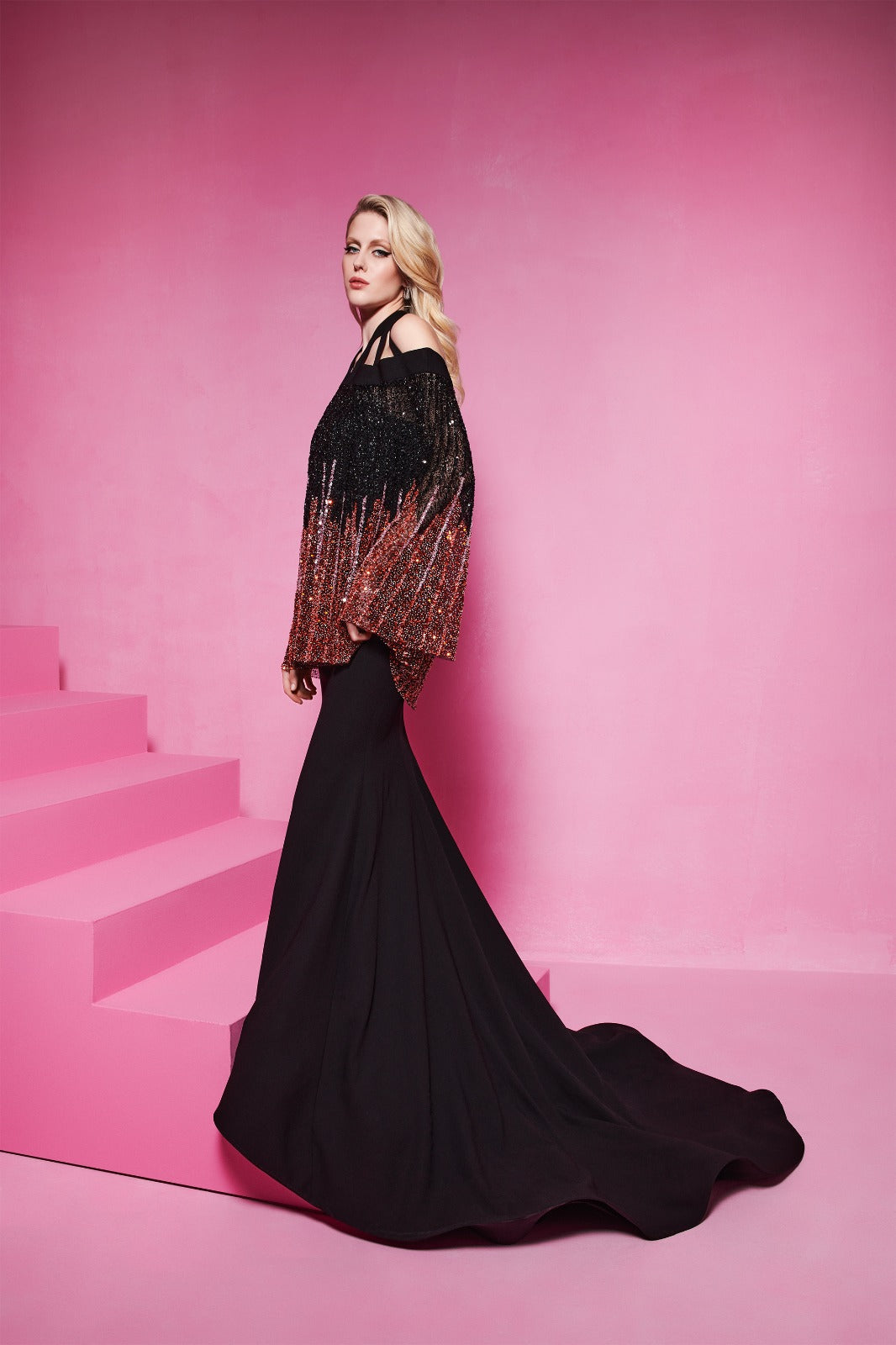 - Hand beaded tulle